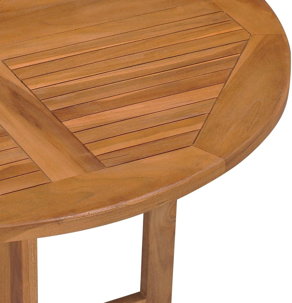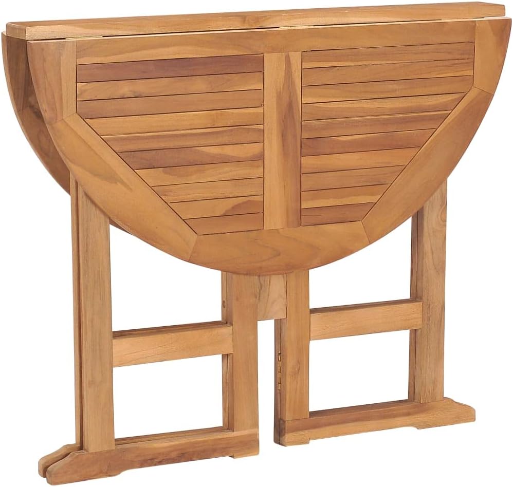 Looking for something more refined and eye-catching for your patio space? This wooden dining table is an optimal choice for you!Constructed from extremely durable teak hard wood, this piece of teak furniture has been seasoned, kiln dried and then fine sanded to give a very smooth appearance. Teak wood is known for its exceptional strength and weather resistance, making it far more suitable for patio furniture than any other kind of wood. Teak wood is the perfect choice if you want to purchase a long lasting piece of patio furniture.Thanks to the folding design, the patio table can be easily folded to save space when not in use.Note: In order to extend the life of your outdoor furniture, we recommend you to clean it regularly and do not leave it outdoors without protection unnecessarily.Clean: Use a mild soap solution.Storing: If possible, store in a cool, dry place indoors. If the product is stored outdoors, protect it with a waterproof cover. Wipe and dry the excess water or snow from flat surfaces after a rain or snowfall. Allow sufficient air circulation to avoid moisture-related damage.Material: Fine sanded teak hard wood with waterbase finishDimensions (unfolded): 35.4" x 35.4" x 29.5" (L x W x H)Dimensions (folded): 35.4" x 29.5" x 5.5" (L x W x H)Tabletop thickness: 0.9"FoldableAssembly required: Yes