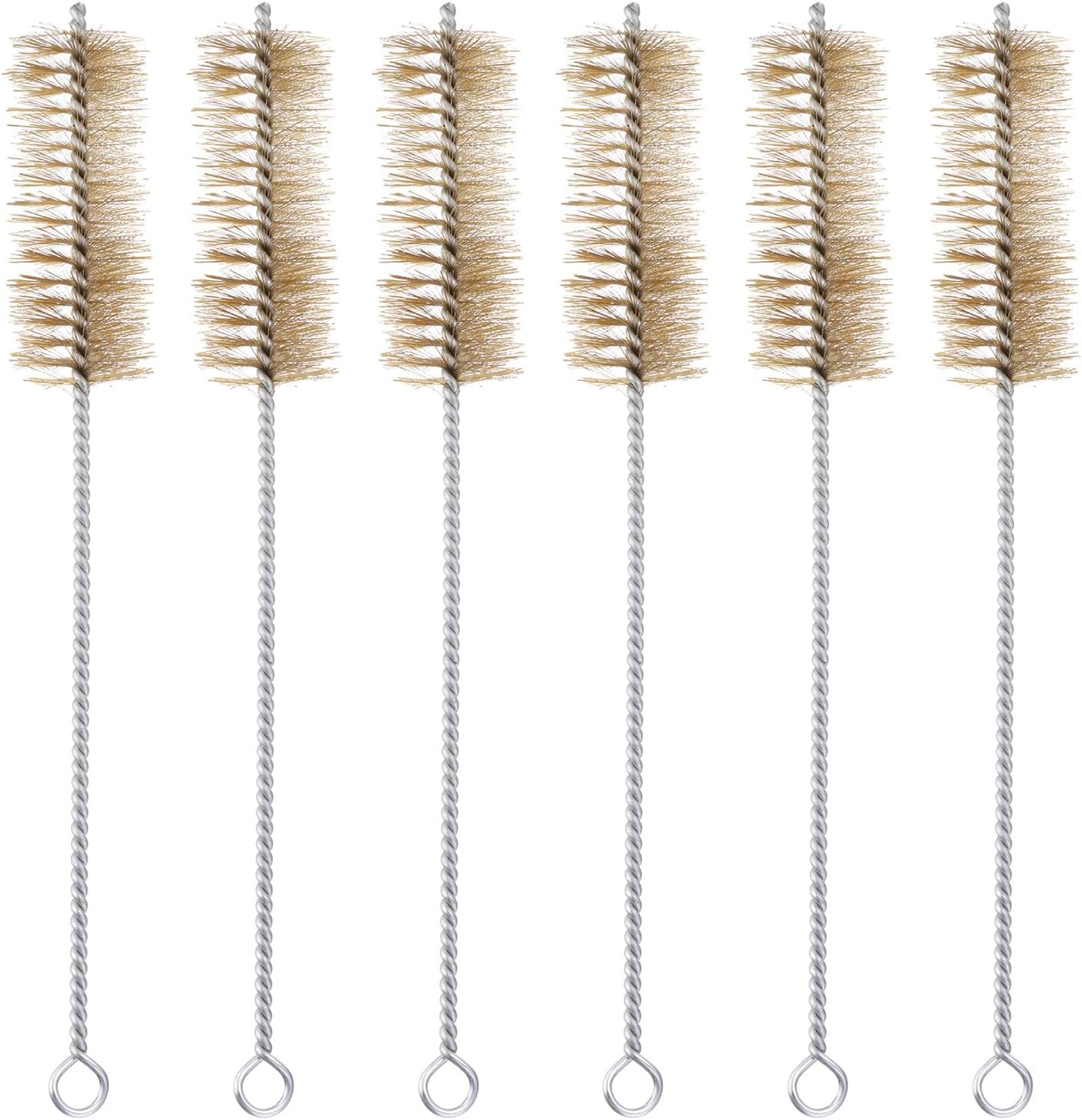 Wire Tube Brush can enter narrow areas, such as internal diameters, crevices, and threaded surfaces. Suitable for cleaning old paint, dirt, and dust in steam radiators, automotive parts, valve guides, water pumps, etc. SpecificationMaterial: BrassColor: Brass ToneSize: 305 x 30mm/ 12 x 1.2 inch (LxD)Brush Length: 99mm/ 3.9 InchPackage List: 6 x Wire Tube BrushAdvantageMade of brass material, is sturdy and not easy to break. Flexible handle lets you bend it at different angles to clean tight spots and hard-to-reach places. The bristle with moderate hardness and a protective design can effectively clean the items. The spiral wire design enhances cleaning effects. Wire loop handle design is good for easy storage.InstructionIts flexibility makes the Wire Tube Brush touch different dirty places to play an excellent cleaning effect.NOTEPlease hang the Wire Tube Brush and stored when not in use for next time use.